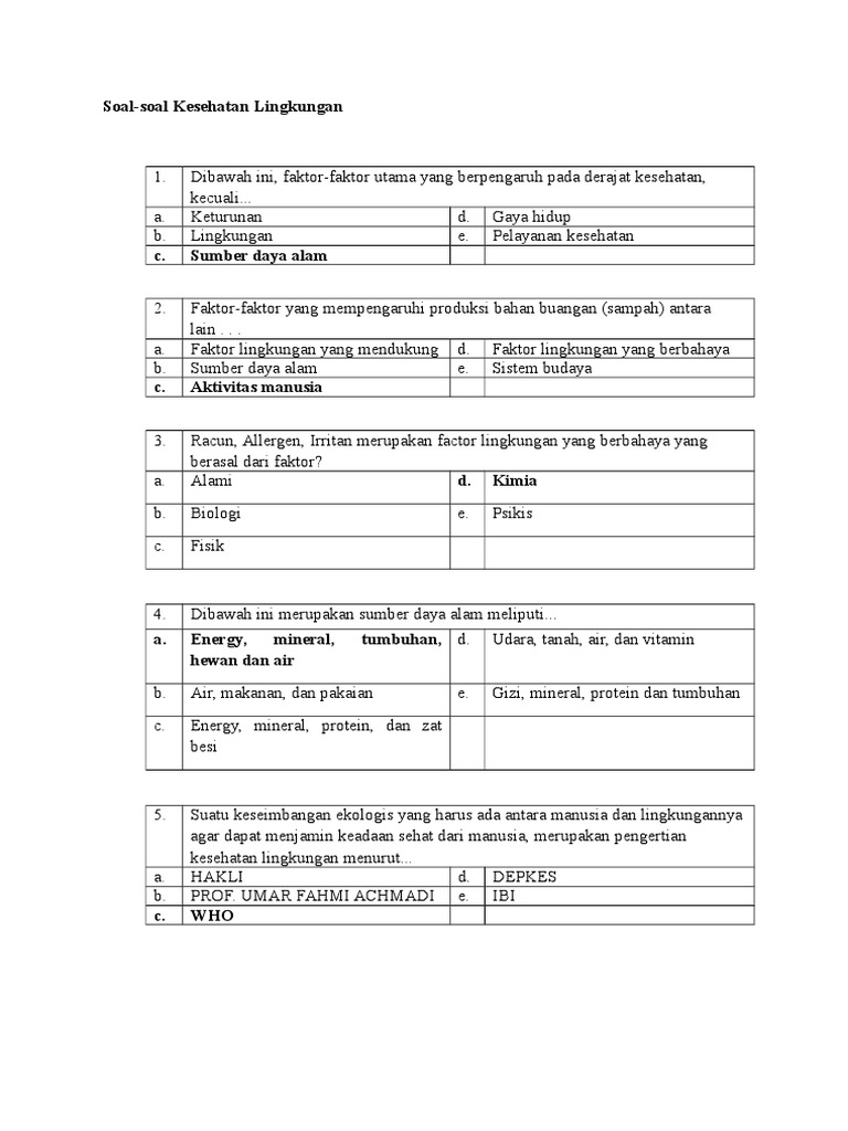 Soal Soal Kesehatan Lingkungan Pdf